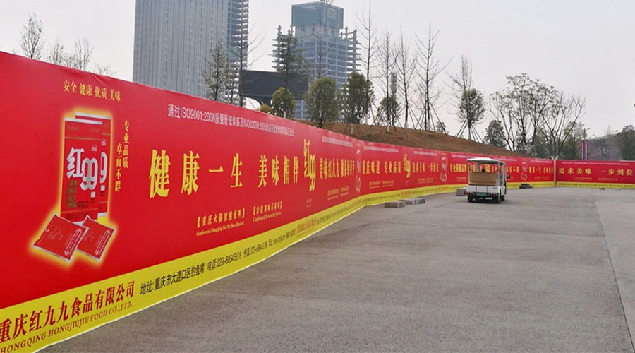 浩浩蕩蕩的400余米圍欄廣告