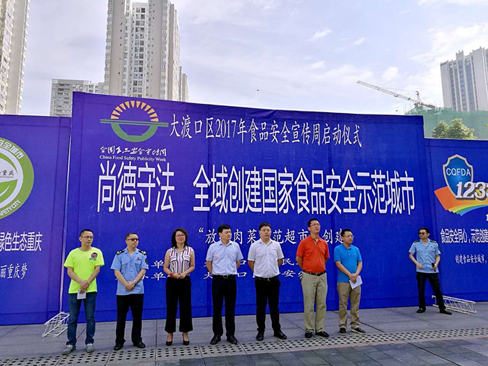 7月10日上午,大渡口區(qū)在九宮廟步行街組織開展以“尚德守法”“全域創(chuàng)建國家食品安全示范城市”為主題,暨食品安全宣傳周宣傳的廣場宣傳活動。區(qū)食品藥品監(jiān)督管理分局、區(qū)衛(wèi)生計生監(jiān)督執(zhí)法局、區(qū)疾控中心、區(qū)食品銷售商戶代表參加了活動。區(qū)政府副區(qū)長毛偉出席此次活動。紅九九食品公司也受邀參與了現(xiàn)場的各項活動。