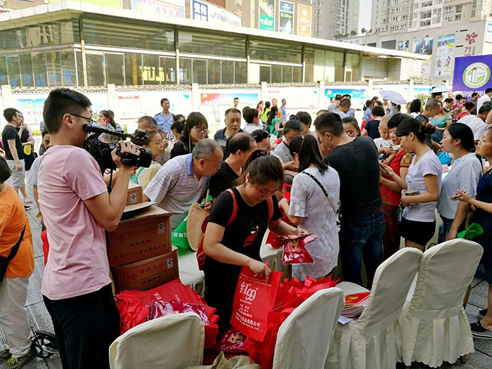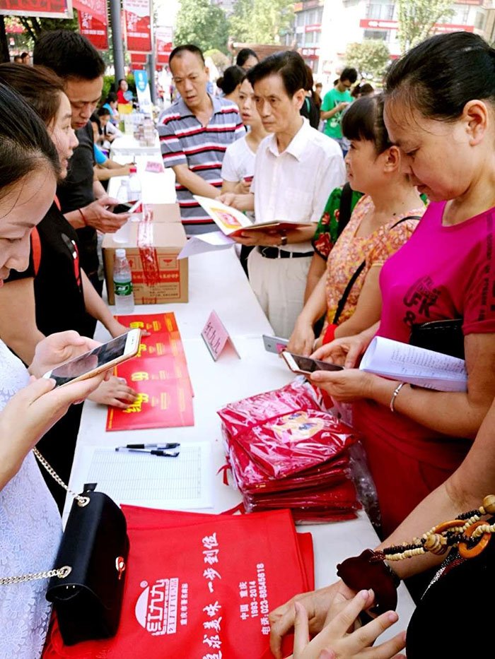 在活動現(xiàn)場,重慶紅九九食品有限公司免費(fèi)發(fā)放大量的紅99火鍋底料及濃縮調(diào)料、圍裙、環(huán)保袋,現(xiàn)場群眾爭相領(lǐng)取。